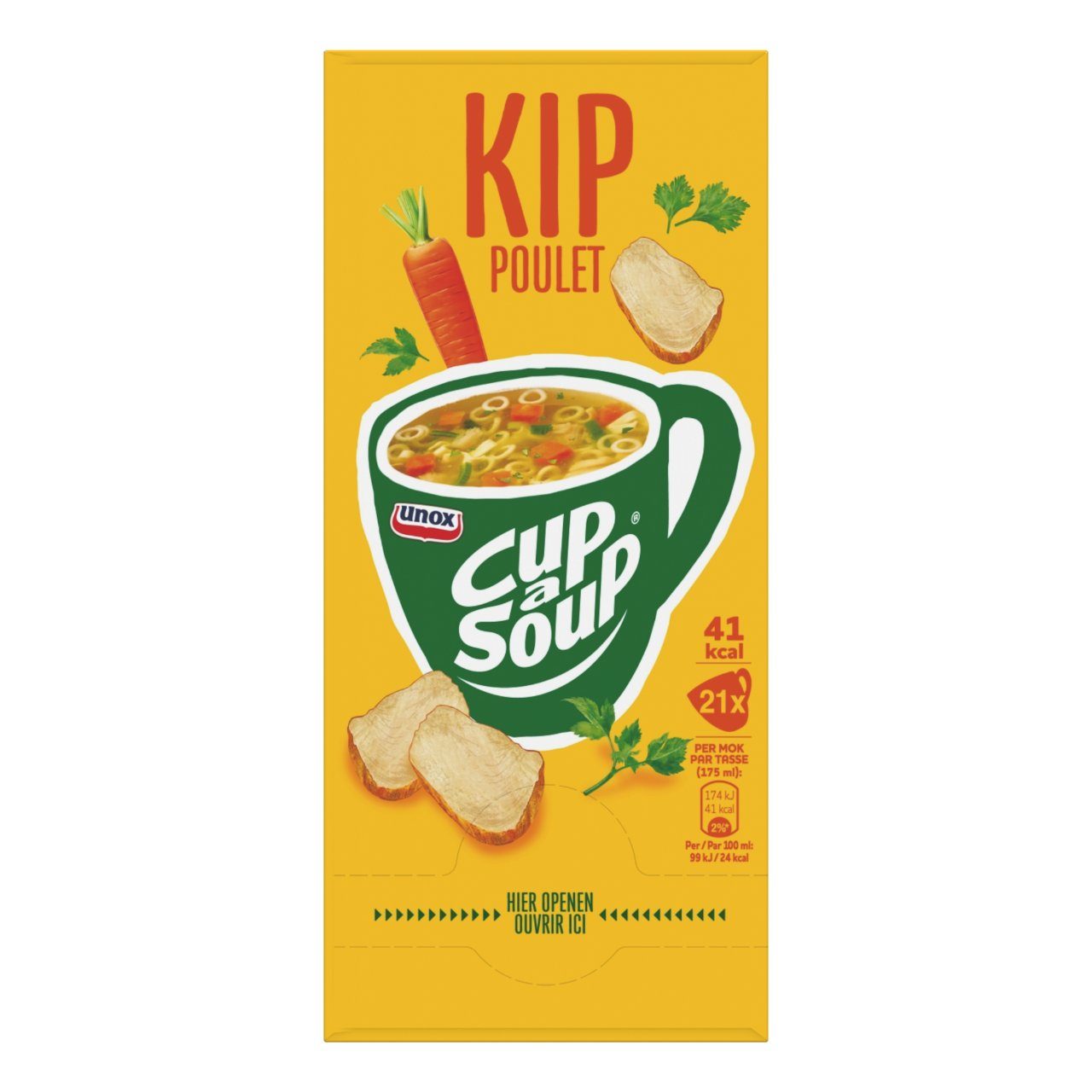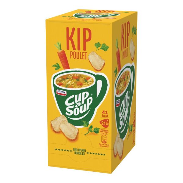 Geniet van een heerlijke Cup-a-Soup Kip, gemaakt van de beste ingrediรซnten en zonder smaakversterkers, kunstmatige kleurstoffen en conserveermiddelen. Niet alleen lekker om vier uur, maar ook tijdens de lunch of op een ander moment van de dag. Dit hartige tussendoortje geeft u een boost in energie. Heerlijk voor op de werkvloer, op school of thuis op de bank. Deze verpakking bevat 21 zakjes Cup-a-Soup voor een kop soep van 175 ml.