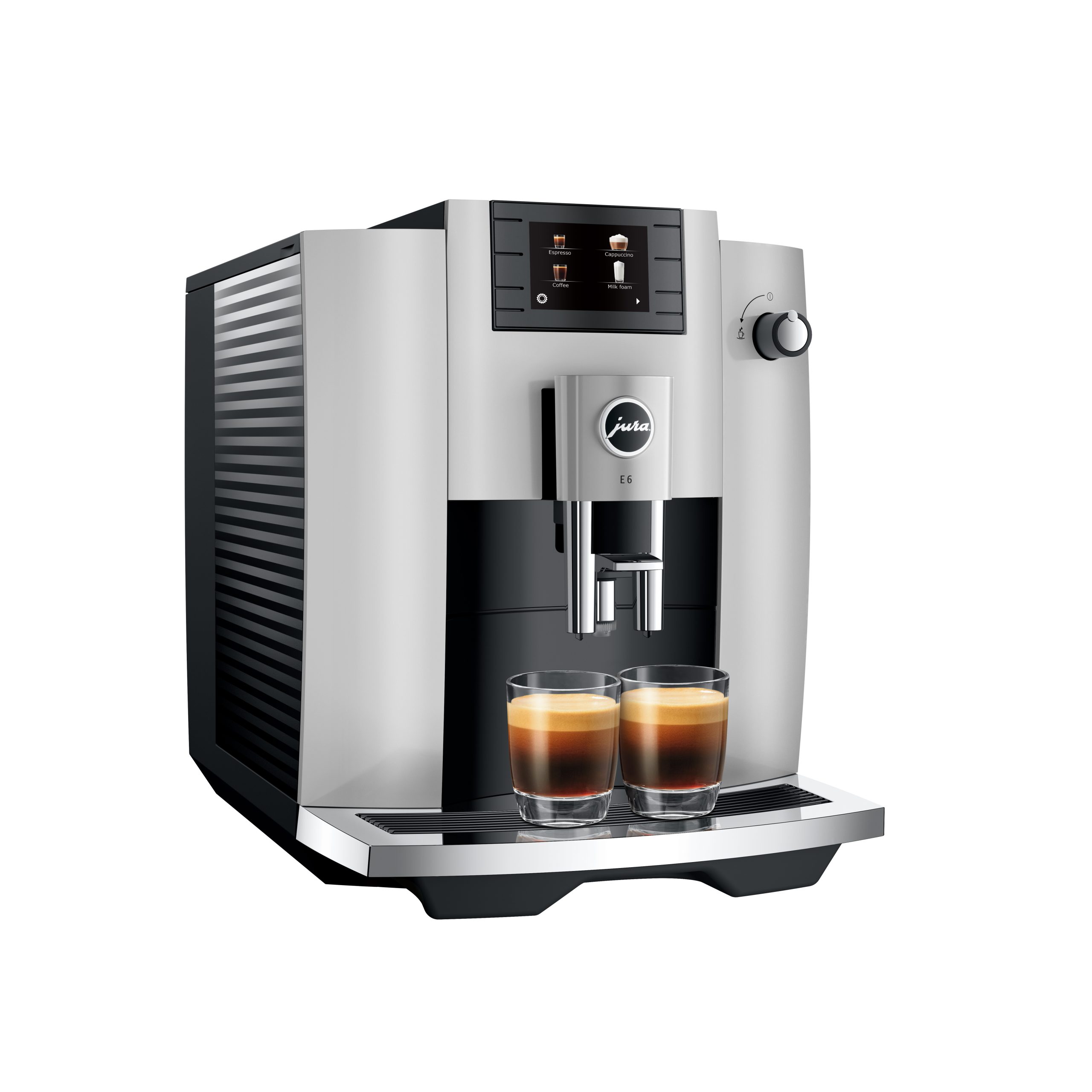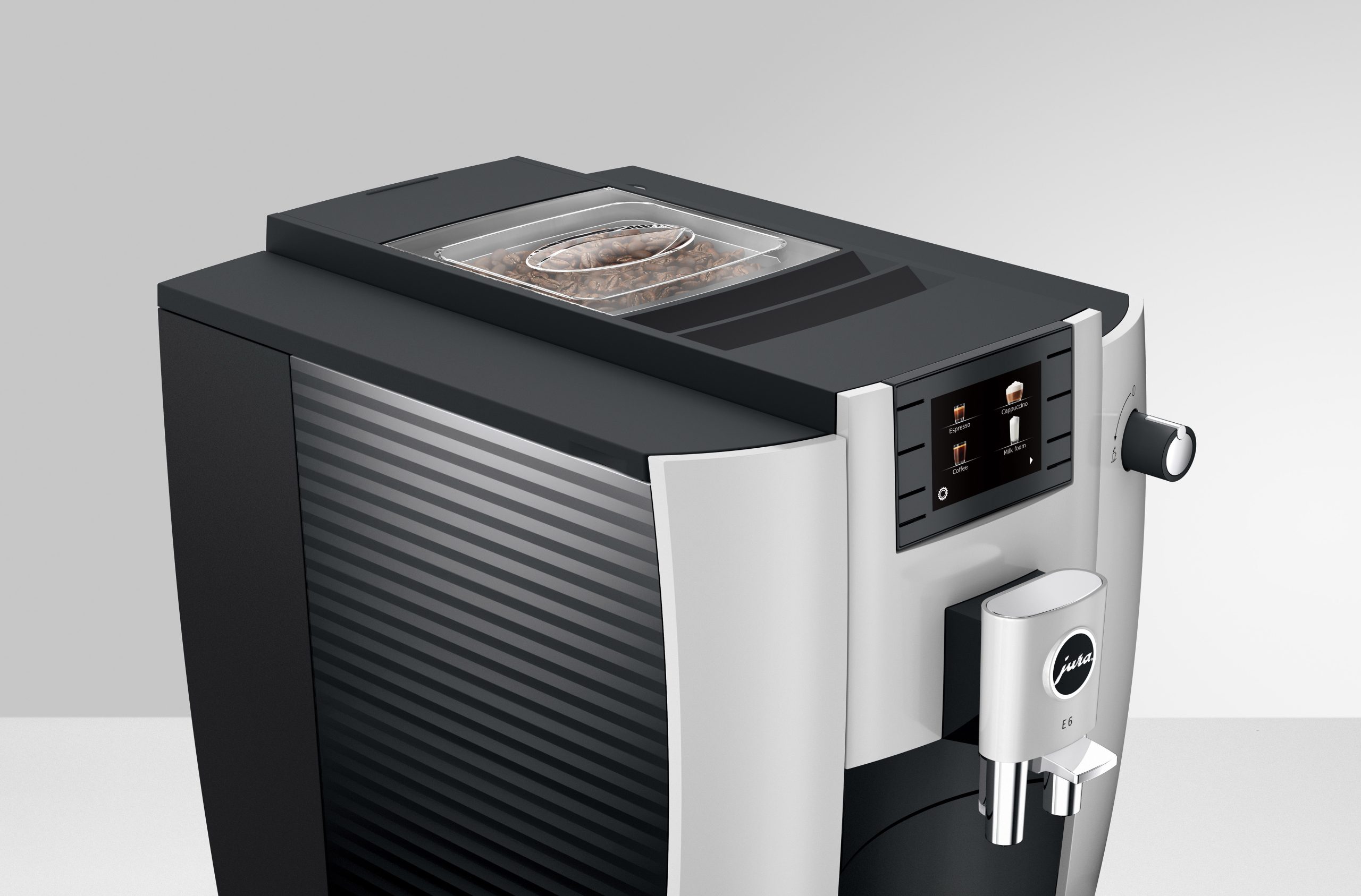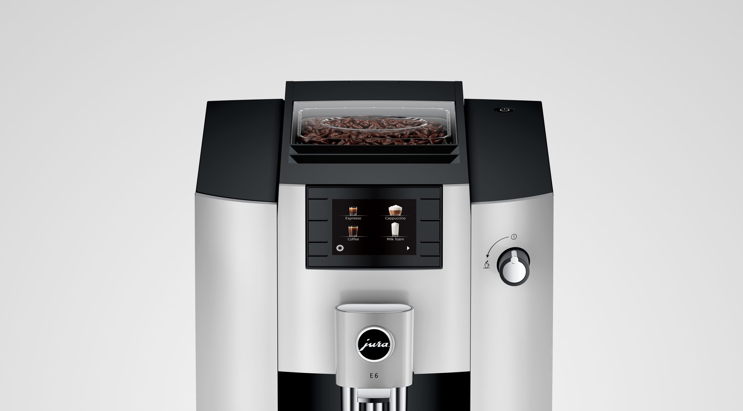 De professionele Aroma-molen zorgt voor nog aromatischere koffie met een gelijkmatiger maalresultaat, en het uitgekiende bedieningsconcept met kleurendisplay en toetsen maakt een ongecompliceerde koffiebereiding met รฉรฉn druk op de knop mogelijk dankzij het stringente gebruikersmenu. De E6 is dankzij zijn tijdloze elegante design een blikvanger in elke keuken.