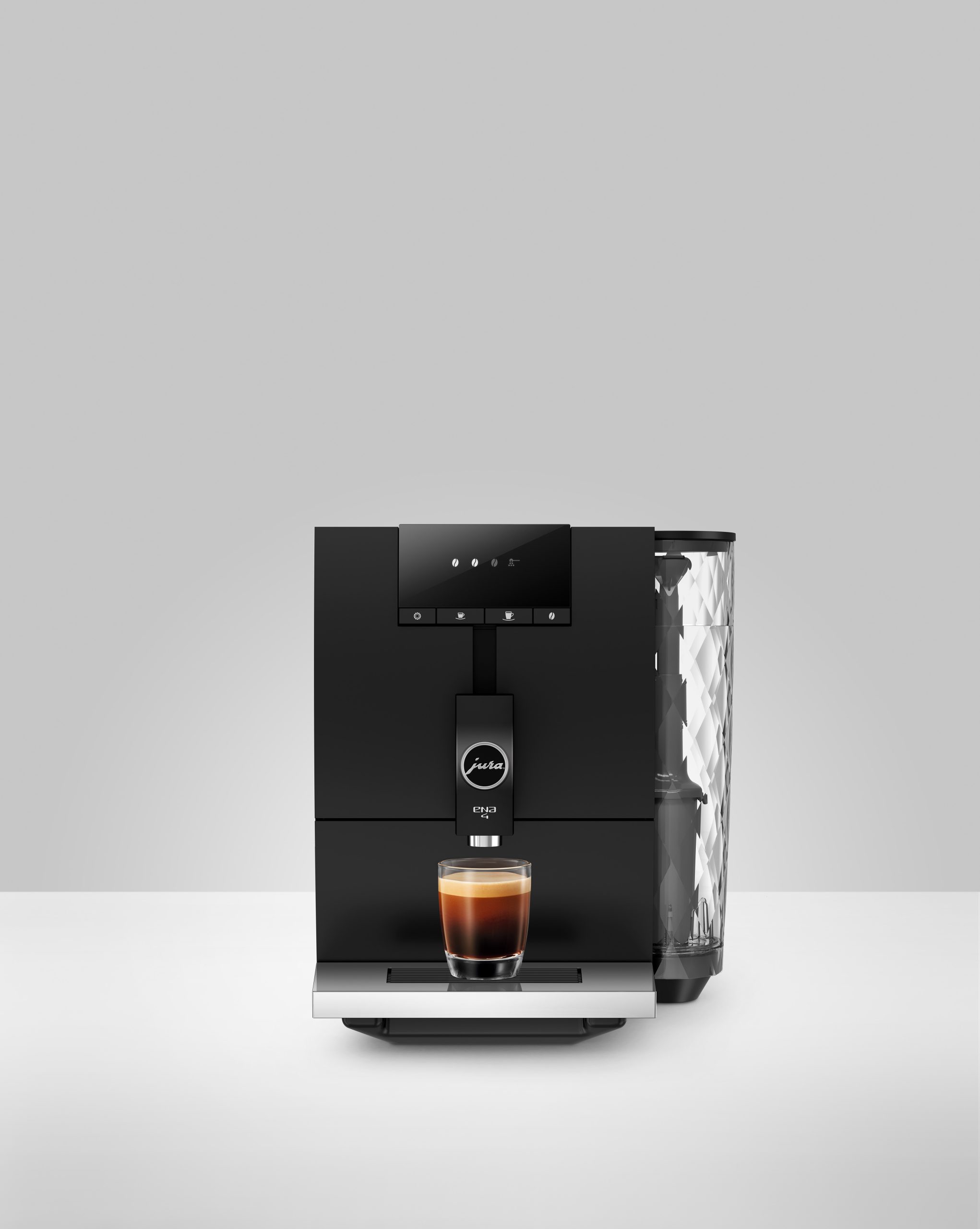 De JURA ENA 4 is klein van formaat, maar groots in prestaties. Het moderne design past in elke keuken en is verkrijgbaar in Full Metropolitan Black en Full Nordic White.