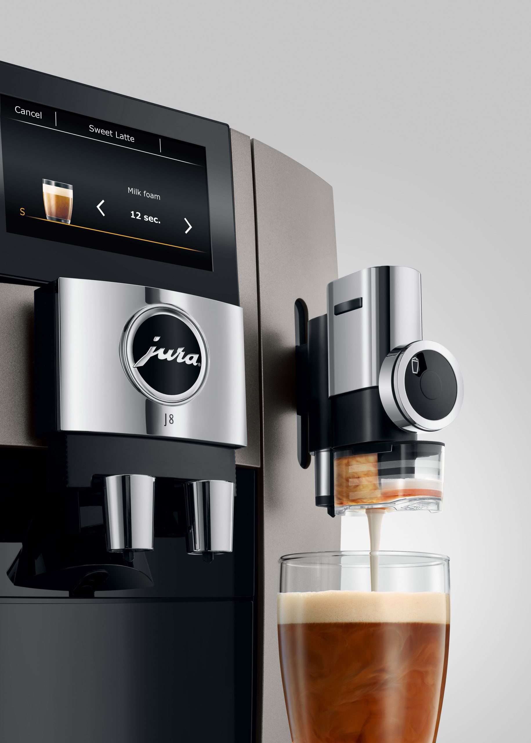 De topgastronomie kent het geheim van ultiem genot: pure, verse ingrediรซnten, meesterlijk verwerkt. Hetzelfde geldt voor exceptionele koffiespecialiteiten. De nieuwe Sweet Foam-functie aromatiseert het melkschuim direct bij de bereiding met het bijbehorende siroopopzetstuk en zorgt voor volkomen nieuwe genotsensaties. Door keuze en dosering van de gebruikte siroop kunnen smaak en intensiteit exact aan de persoonlijke voorkeuren worden aangepast. Zo weet de J8 zelfs hippe trendspecialiteiten als de Sweet Latte met รฉรฉn druk op de knop tevoorschijn te toveren.