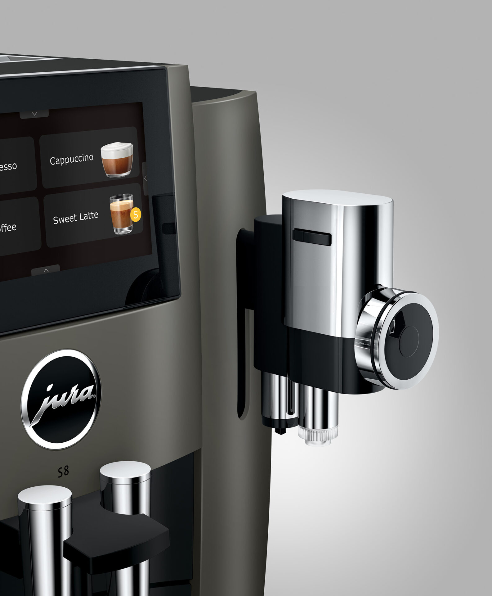 De elegante S8 brengt zowel koffieliefhebbers als estheten in vervoering. Het apparaat straalt al op het eerste gezicht een uitzonderlijke klasse uit dankzij het sculpturale design, de hoogwaardige materialen en het uitzonderlijke vakmanschap. Nieuwe mogelijkheden voor perfect genot worden gecreรซerd door innovatieve technologieรซn.