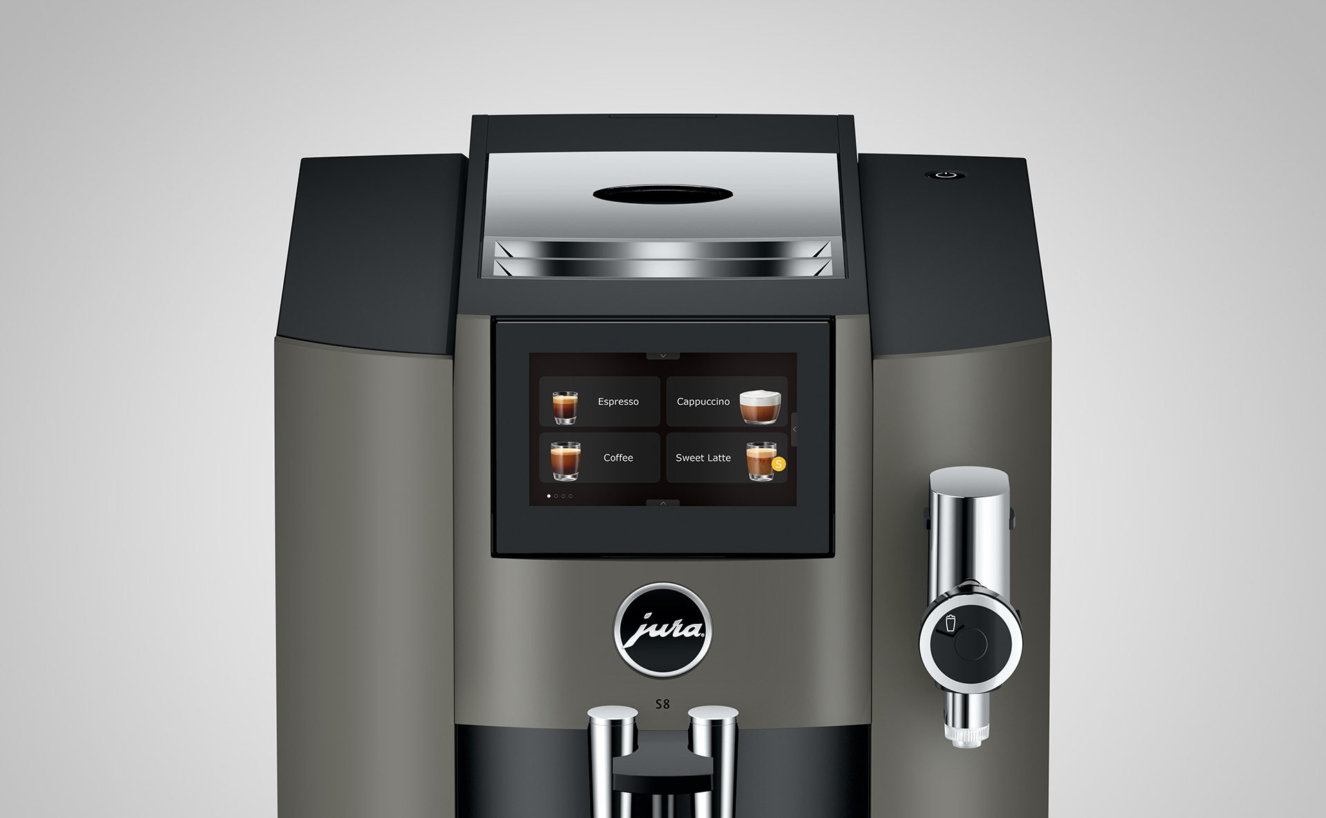 Dankzij de strakke lijnen, de hoogwaardige materialen en het vakmanschap van de S8 zal het ontwerp zelfs na vele jaren nog steeds nieuw en ongebruikt lijken. De machine presenteert zich met uniforme elegantie en integreert de beste kenmerken van de compacte klasse met elementen uit het Premiumsegment. Dit is belangrijk omdat de koffiemachine uiteindelijk een lust voor het oog is.