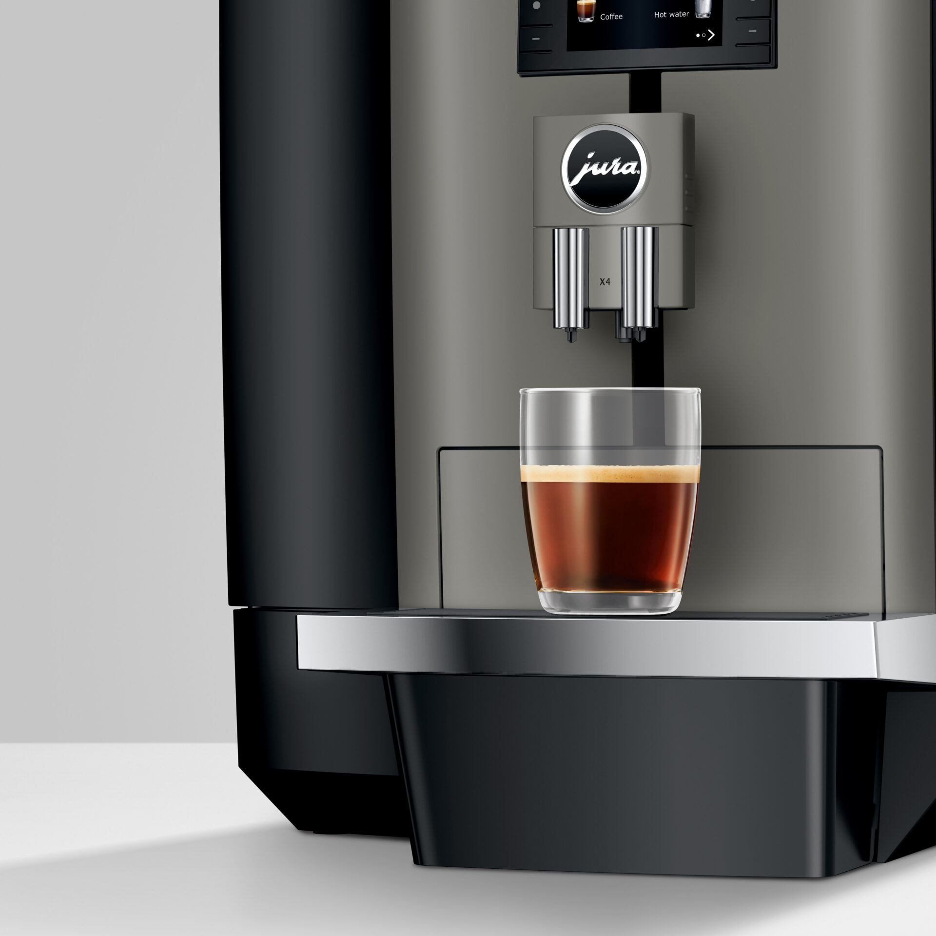 Met de kleur Dark Inox en rechtlijnige vormentaal presenteert de X4 zich in het klassieke JURA-design. Hij is een blikvanger en in een designgerichte omgeving komt hij even stijlvol over als op het buffet van de cateraar. Het design van de X4 brengt de esthetiek en functionaliteit in een harmonisch evenwicht.